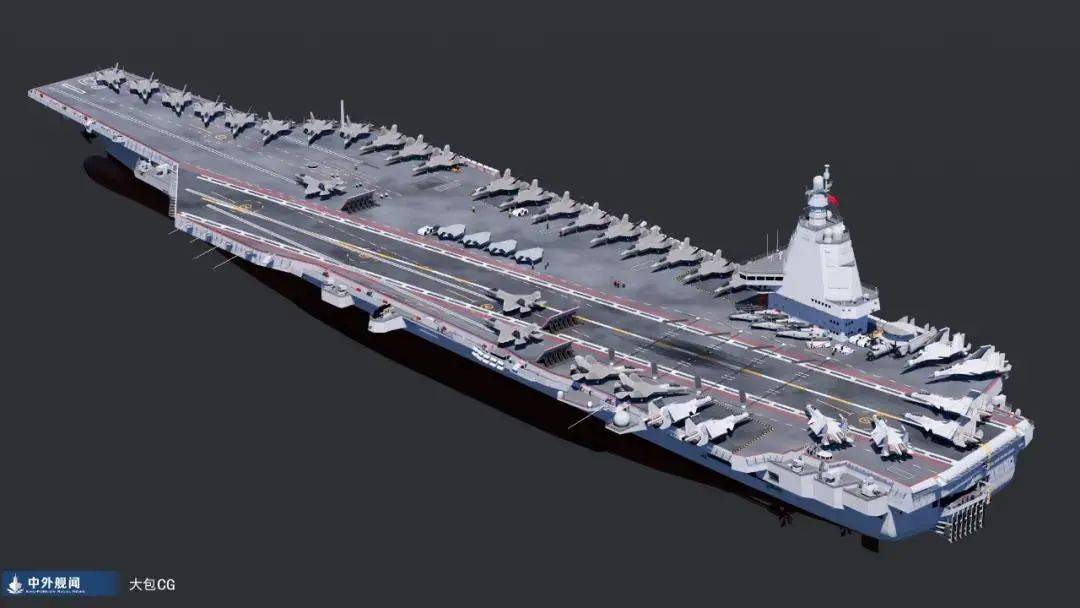 卫星图里最显眼的,就是那两个分段的水线 米。要知道,美国“福特”级航母的水线 米,我国的福建舰也只有 40 米。水线 米,排水量能增加多少呢?