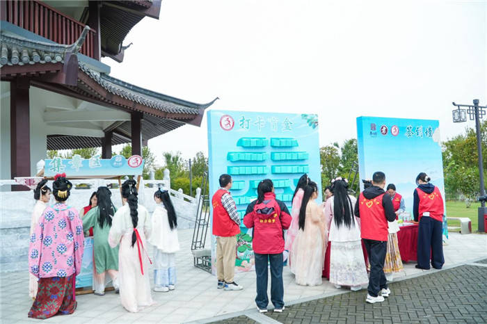 此外,本次活动还为游园群众设立集章打卡、互动游戏、儿童淘趣节、帐篷彩绘等娱乐项目。游客们登攀寿昌塔远眺公园秋日景色,于孝文化展馆品茗听曲,妙趣横生。